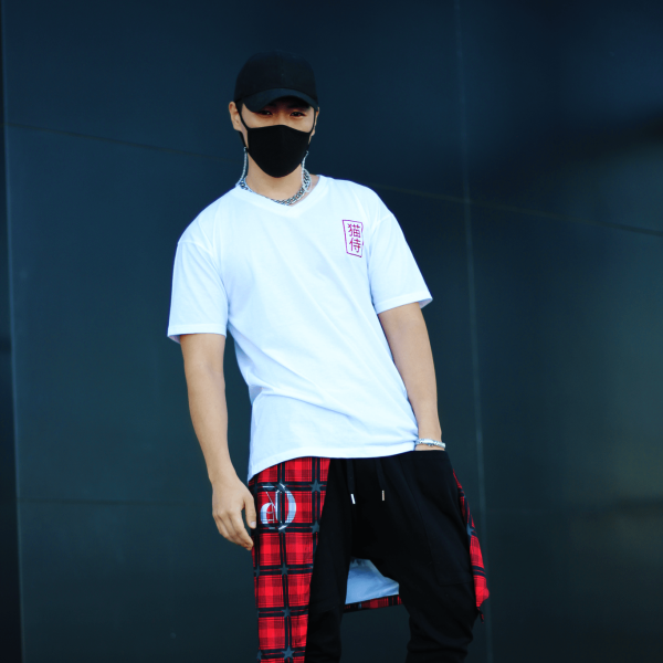 This Neko Samurai Tee is made with 100% organic cotton blend for a soft and comfortable fit. Designed by Sanji, a local designer, the shirt features a screen print of Neko Samurai in Japanese Kanji. With neat seams and a gentle touch, this shirt is perfect for everyday wear. Machine washable for easy care.